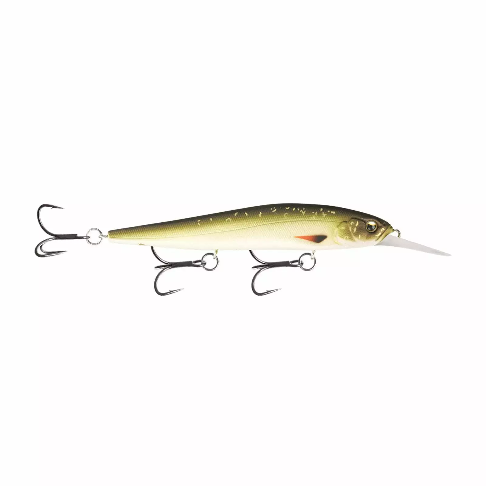 Upgrade your bait selection with the 13 Fishing Loco Special Jerkbait! This jerkbait has a perfectly tapered body style and a sharp bill that create a darting motion with every jerk of your rod. This erratic baitfish motion will have larger fish striking over and over again! Not only does this bait move in a realistic pattern, but it is also equipped with ultra high definition paint that brings a life-like shimmer in the water and 3D eyes that add to the alluring figure.