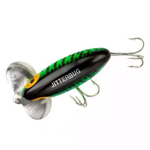 The Arbogast Jitterbug is the most respected topwater lure for night fishing, but it also produces explosive strikes throughout the day. The Jitterbug’s double cupped lip, placed at precisely the correct angle, produces the loud, rhythmic, surface-busting sound that is proven to be irresistible to bass, pike and other gamefish.