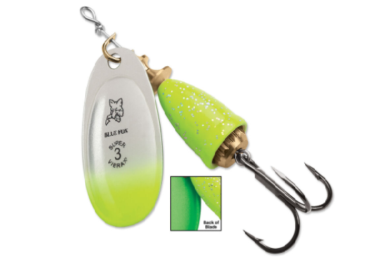 The Classic Vibrax Plated Spinners patented two-part body emits low-frequency sound vibrations that attract fish and trigger strikes while virtually eliminating the twist. Features an extremely sharp VMC Hook, plated blades, and a stainless steel shaft