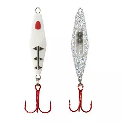 Clam Jason Mitchell Rattlin’ Blade Spoons have a pyrex glass rattle that’s loud and noisy to attract fish from large distances. Unlike traditional rattle spoons, these can be described as a flutter spoon that jigs and flutters on the way down, making it perfect for ice fishing.