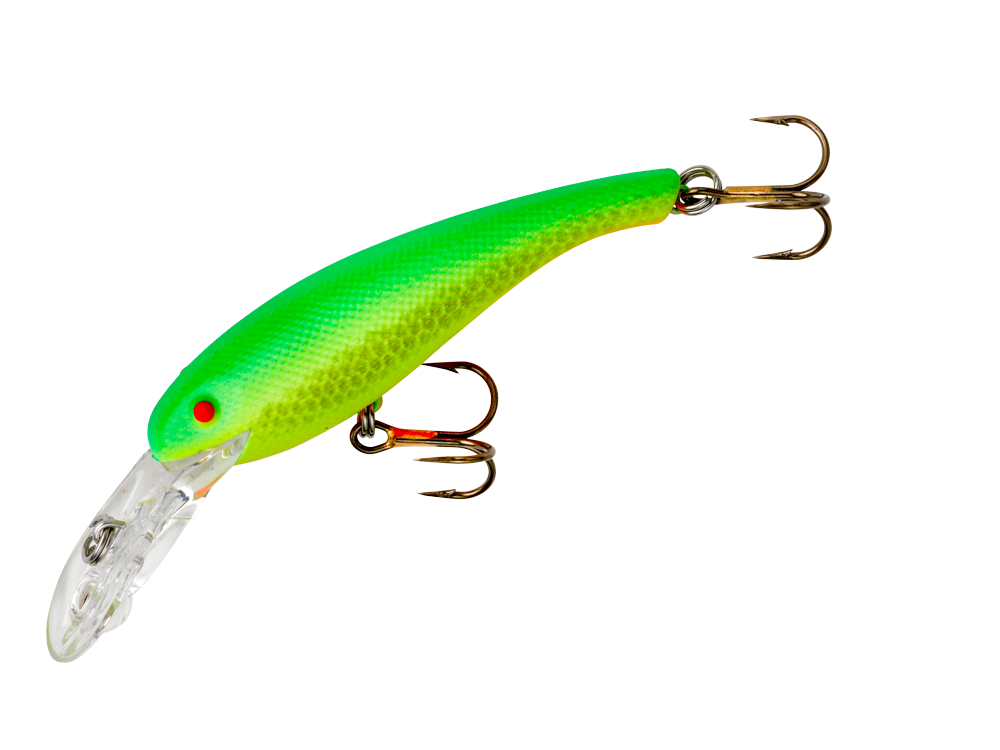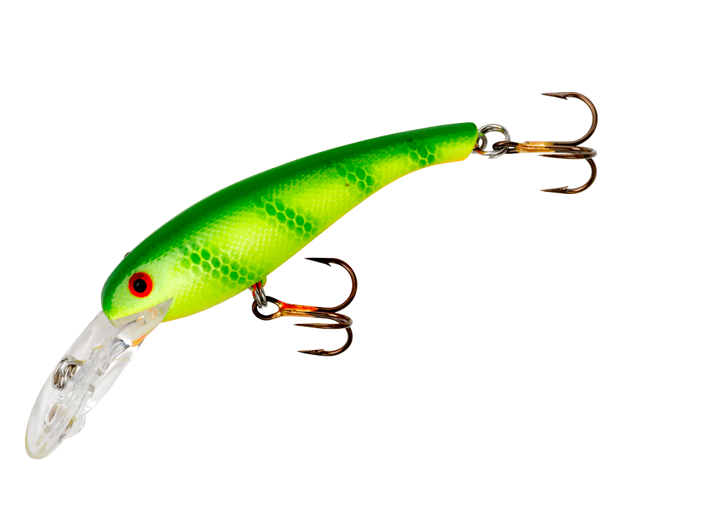 The Cotton Cordell Wally Diver is one of the legendary walleye lures of all time. The proven slender profile and tight wiggle make it a go-to for walleye anglers everywhere. Two sizes are available, the 2 ½-inch CD5 and the 3 1/8-inch CD6. The CD5 dives to 8 feet on the cast and 11 when trolled, while the larger CD6 dives to 11 feet on the cast and 18 when trolled. The Wally Diver is available in a multitude of color patterns designed to catch boatloads of trophy walleyes.