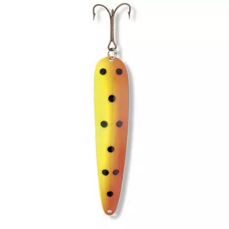 Lucky Strike Canoe Wobbler Spoons. Produced by one of Canada’s oldest lure manufacturers, the action and size of these spoons provokes a response from larger fish. They’re made of quality brass with sturdy treble hooks. You can troll for trout with them or cast for big pike and muskies. Per each.