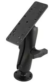 he RAM-111U consists of a 2.5″ diameter round base that contains the universal AMPs hole pattern, STANDARD LENGTH double socket arm and 6.25″ x 2″ rectangle base. The rectangle base contains different combinations of pre-drilled holes which will match up to many electronic devices and mounts, including Marine GPS, CB Radios, Ham Radios, Gimbal Brackets and more.