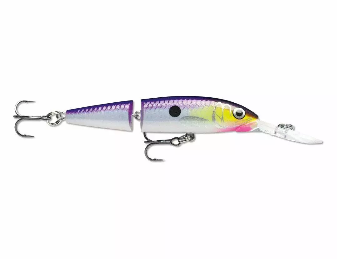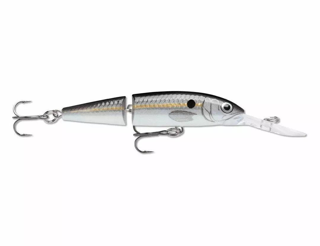 The Rapala Jointed Deep Husky Jerk swims with the classic Rapala “wounded minnow” wobble, accentuated by an exaggerated tail action. The Jointed Deep Husky Jerk has proven itself with walleye and all other trolling anglers as well. External scales are painted in an aggressive, natural pattern. This suspending lure produces a loud rattle, runs straight and true at any speed, and boasts a lifelike finish with painted silver eyes. Hand tuned and tank tested. Ideal for casting and trolling.